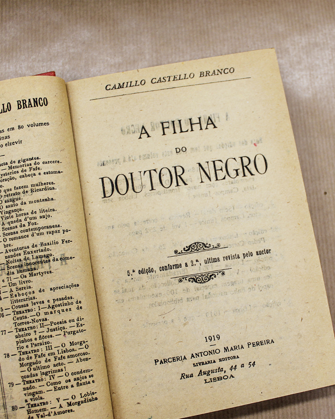 - 1919, Parceria Antónia Maria Pereira, Livraria Editora, Rua Augusta, 44 a 54, Lisboa